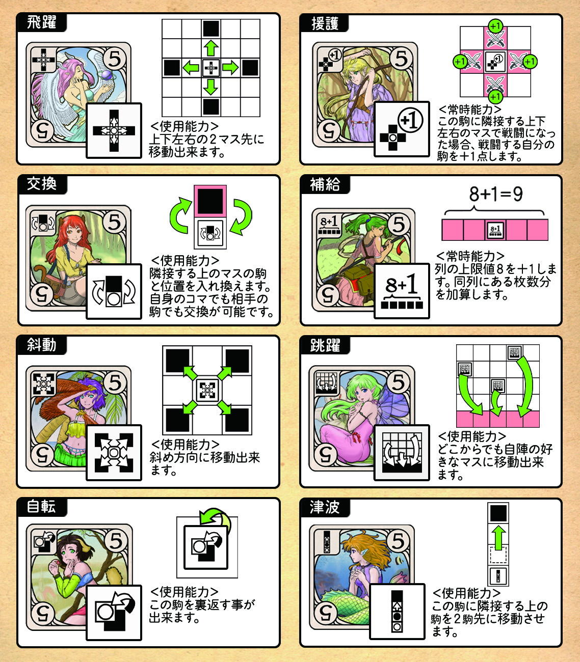 上級者向けとして、新たに8種類のコマ能力を追加します。